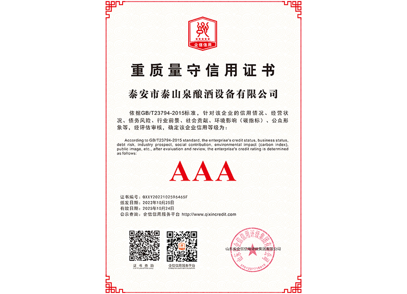 泰安市泰山泉釀酒設(shè)備有限公司,是一家專(zhuān)業(yè)從事釀酒設(shè)備機(jī)械化研發(fā)并集技術(shù)咨詢,工程設(shè)計(jì),制造安裝,人員培訓(xùn)及售后服務(wù)為一體的綜合性企業(yè),本公司主要產(chǎn)品為:大曲清香、小曲清香、大曲醬香、大曲濃香等香型白酒機(jī)械化設(shè)備?! ”竟九c中國(guó)科學(xué)院自動(dòng)化研究所簽訂技術(shù)服務(wù)合同,引進(jìn)先進(jìn)技術(shù),研究生產(chǎn)全自動(dòng)化機(jī)械釀酒設(shè)備,由中國(guó)科學(xué)自動(dòng)化研究所的技術(shù)支持,打造最先進(jìn)的生產(chǎn)釀酒設(shè)備,公司有信心打造全國(guó)最先進(jìn)白酒...